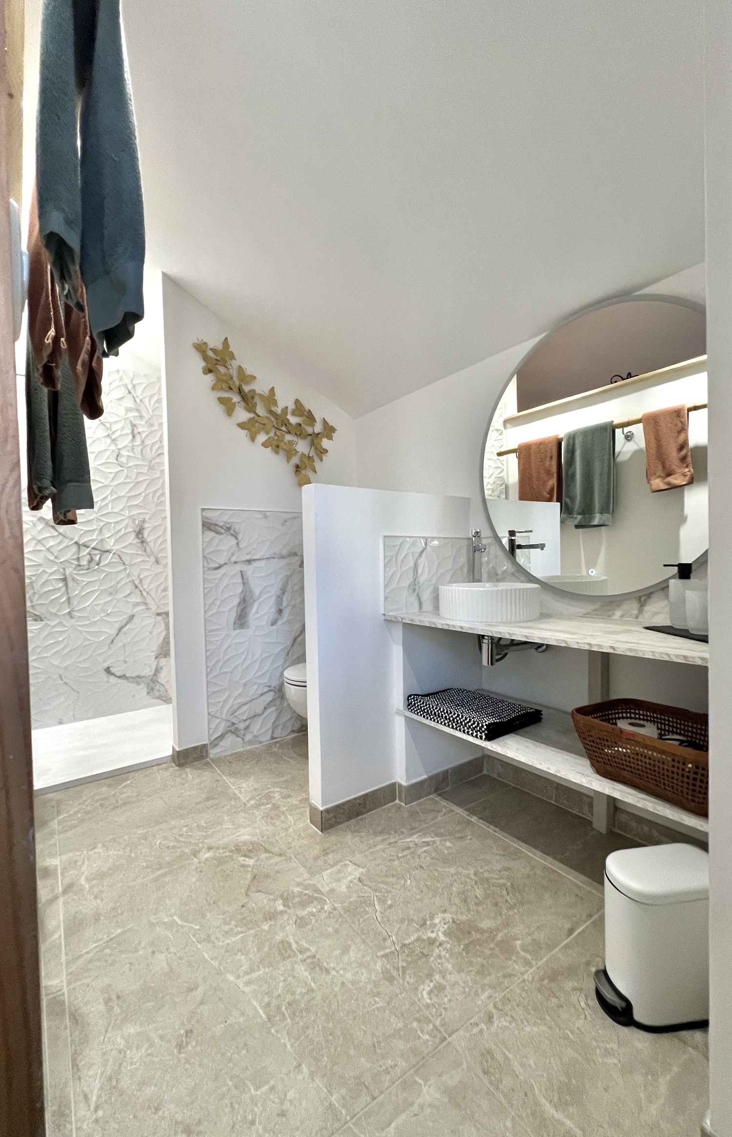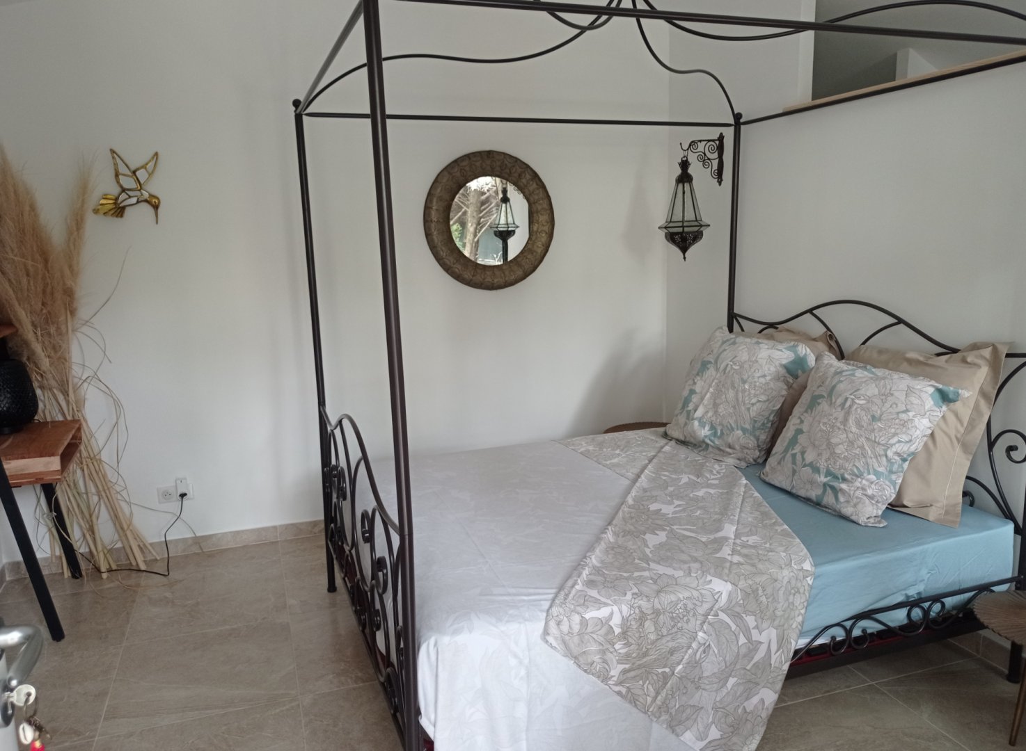 La chambre Les Fougères séduit par son atmosphère douce et végétale, inspirée des nuances de la nature. Elle offre un espace chaleureux où se mêlent élégance, confort et matières naturelles. Lumineuse, elle bénéficie d’une belle vue sur le jardin et le parc, invitant à la détente dès le matin. Équipée d’un lit confortable, d’un espace de rangement et d’une salle d’eau moderne, elle est idéale pour un séjour paisible en couple ou en solo. La chambre Les Fougères promet un cadre reposant, parfait pour savourer le calme de notre maison d’hôtes et se ressourcer en pleine nature.